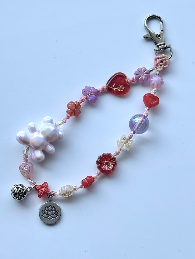 〈素材〉 ポリエステル糸 1ミリ メタルビーズ 11ミリ玉 ワックスコード 0.75ミリ 中国結び(市販)220×47ミリ 瑞祥結び(ずいしょうむすび) 瑞祥とは、めでたい兆し。 赤は厄除け、紫は高貴と精神性を表す色。 中心に集う結びは 「福を集め、運を循環させる」形。 ひとつの結びに願いを込め、 新しい年の始まりに吉を招きます。 玄関、扉、バッグに。 日常にそっと“吉の兆し”を結ぶ飾りです。