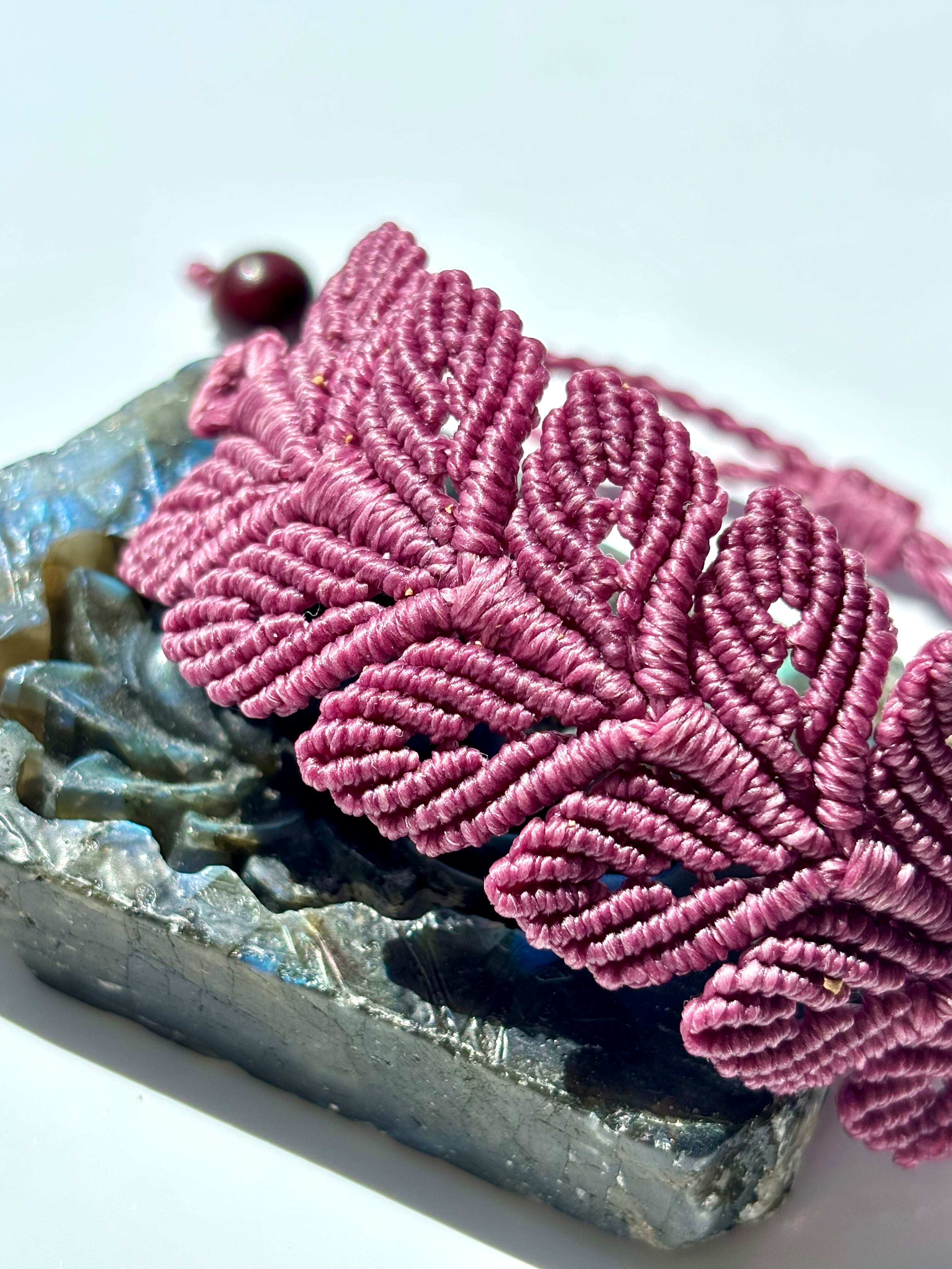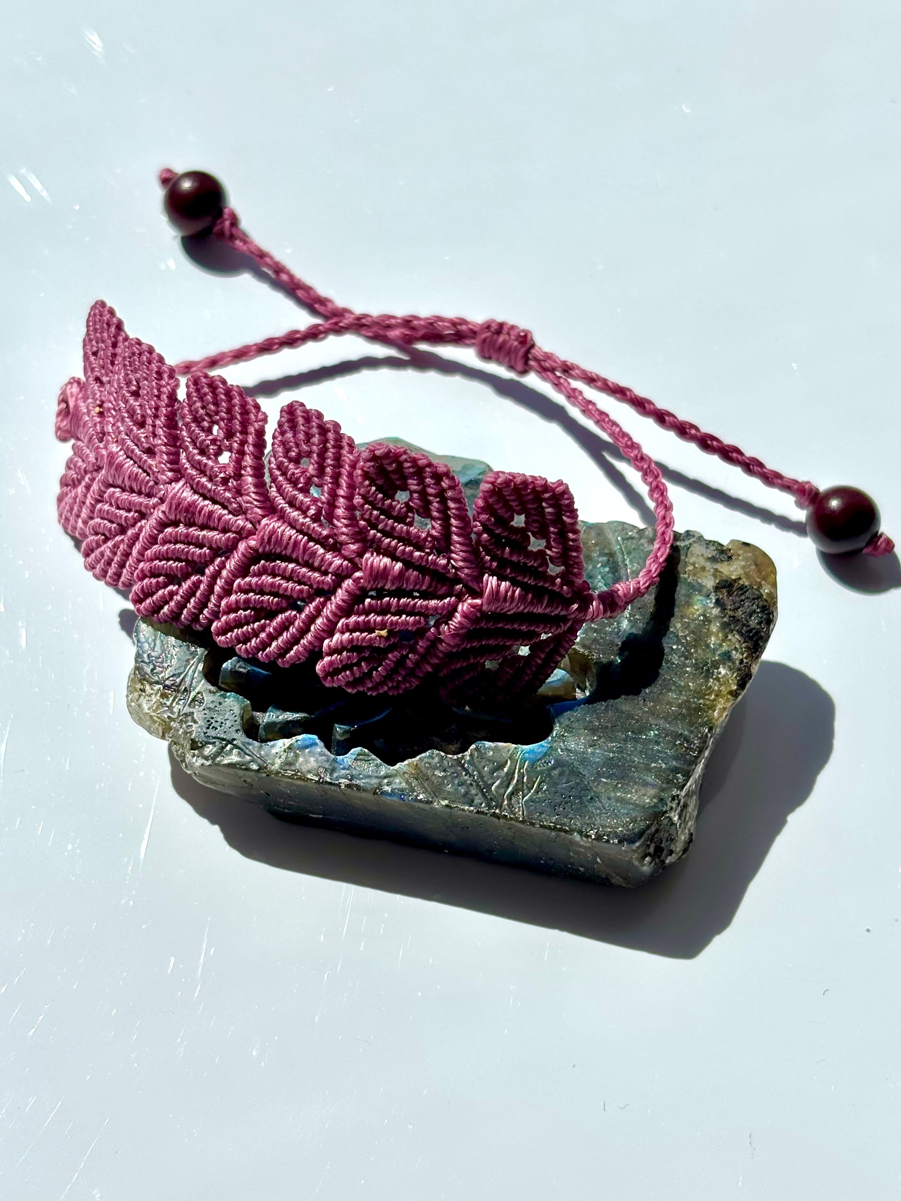 丁寧に編み込まれた双葉。生命力に満ち溢れたフィシスが手首に寄り添うマクラメブレスレット。