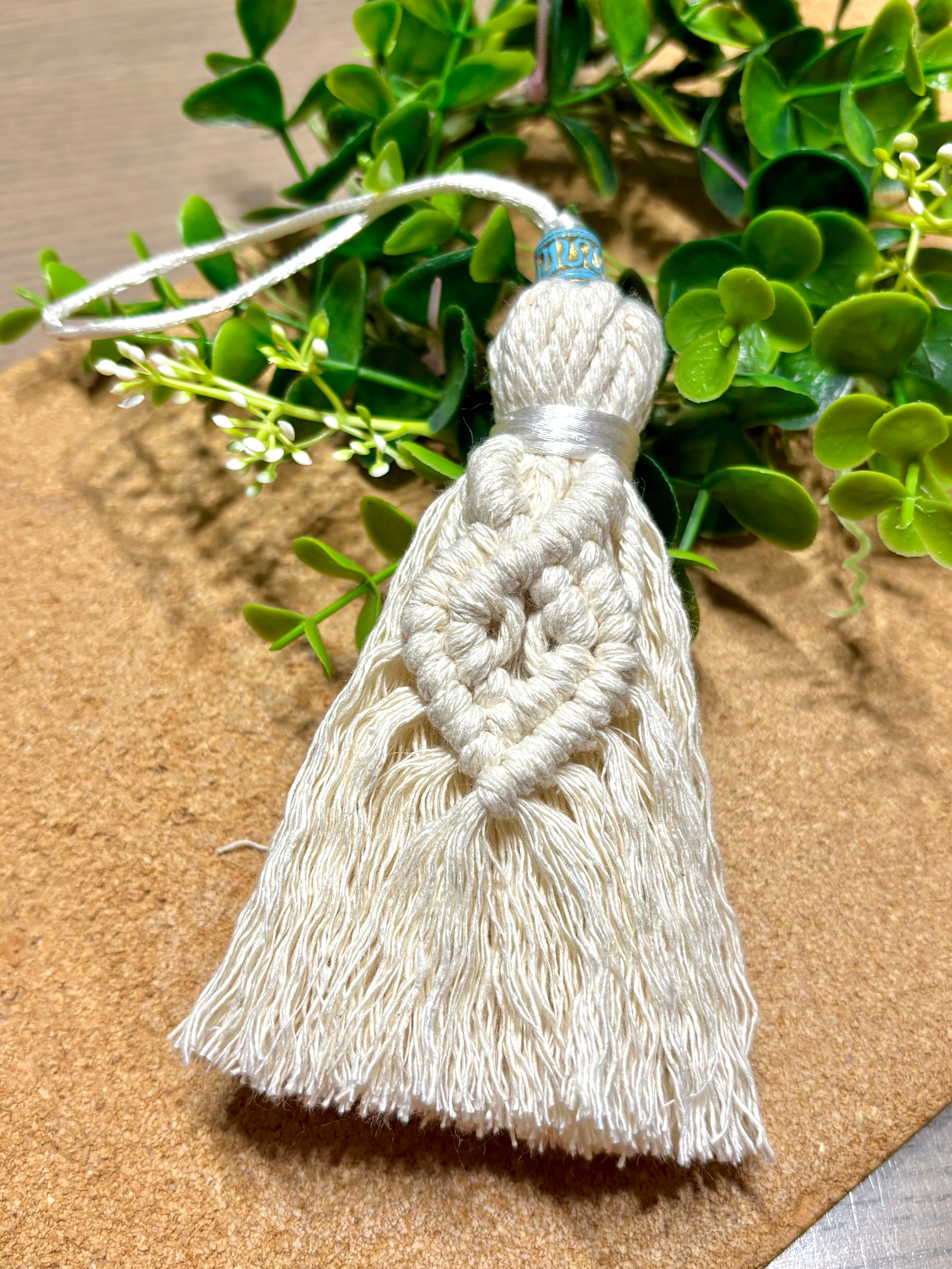 白く柔らかな糸が星明かりのようにきらめく、ロマンティックなタッセルチャーム。