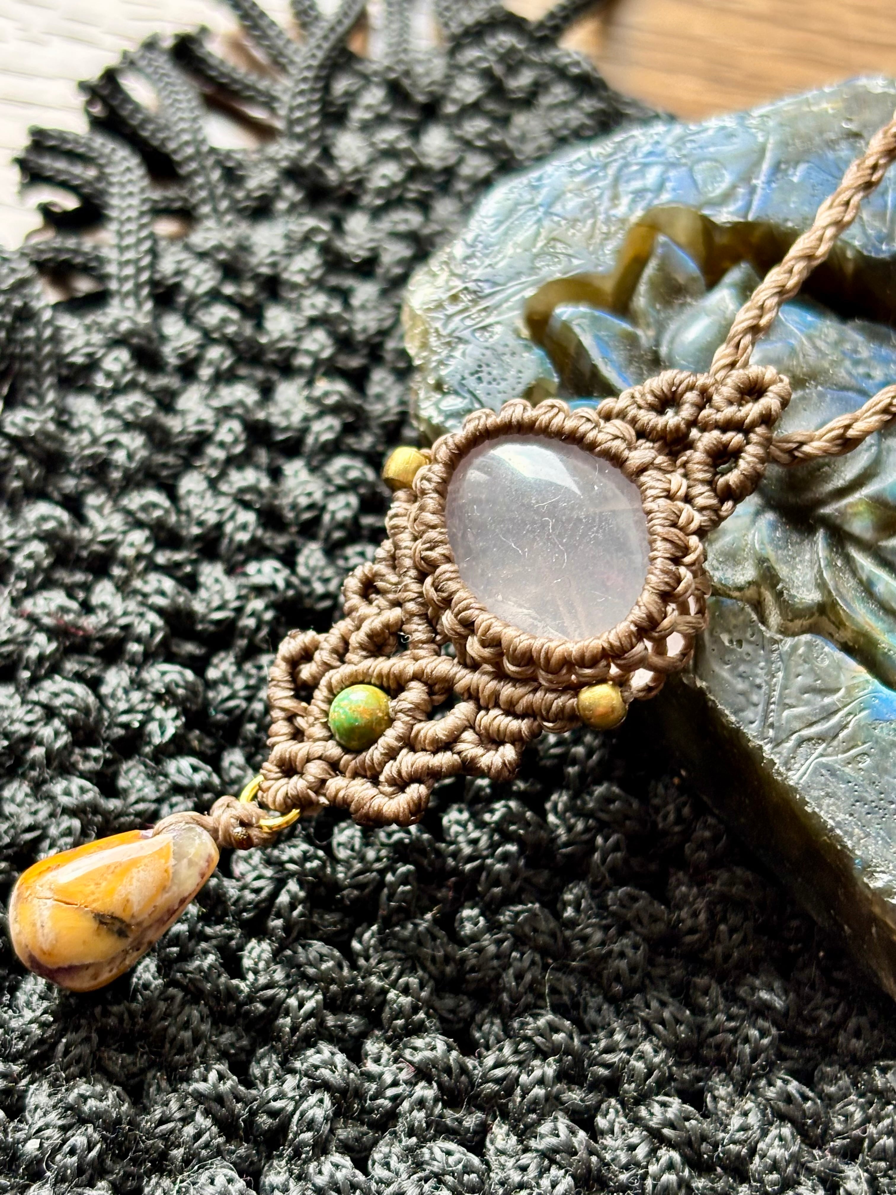 そっと寄り添うお守りのようなマクラメペンダントです。
