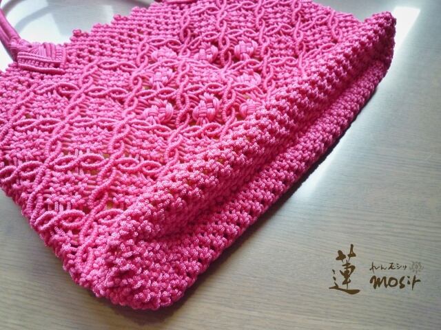 コットンやジュート素材の簡単なマクラメバッグは割と目にしますが、