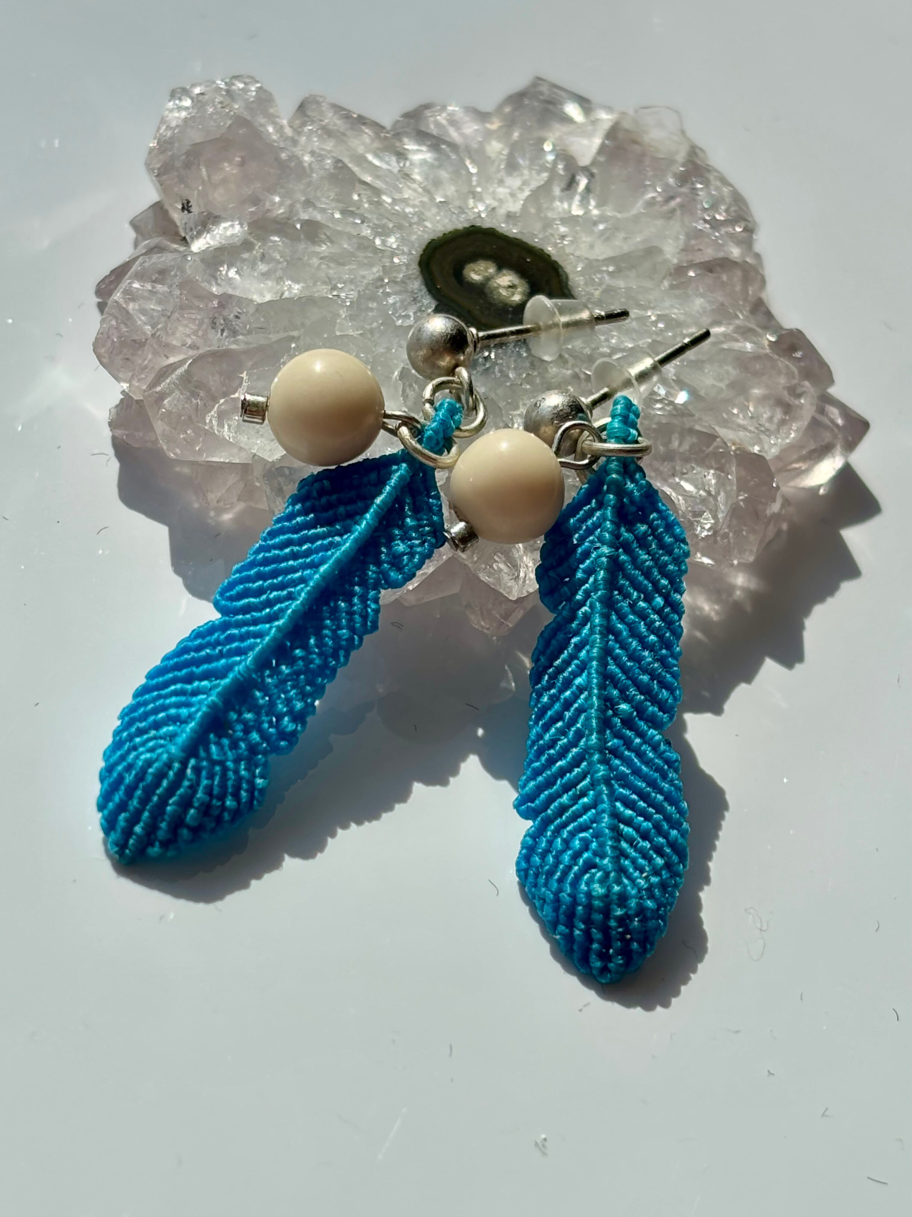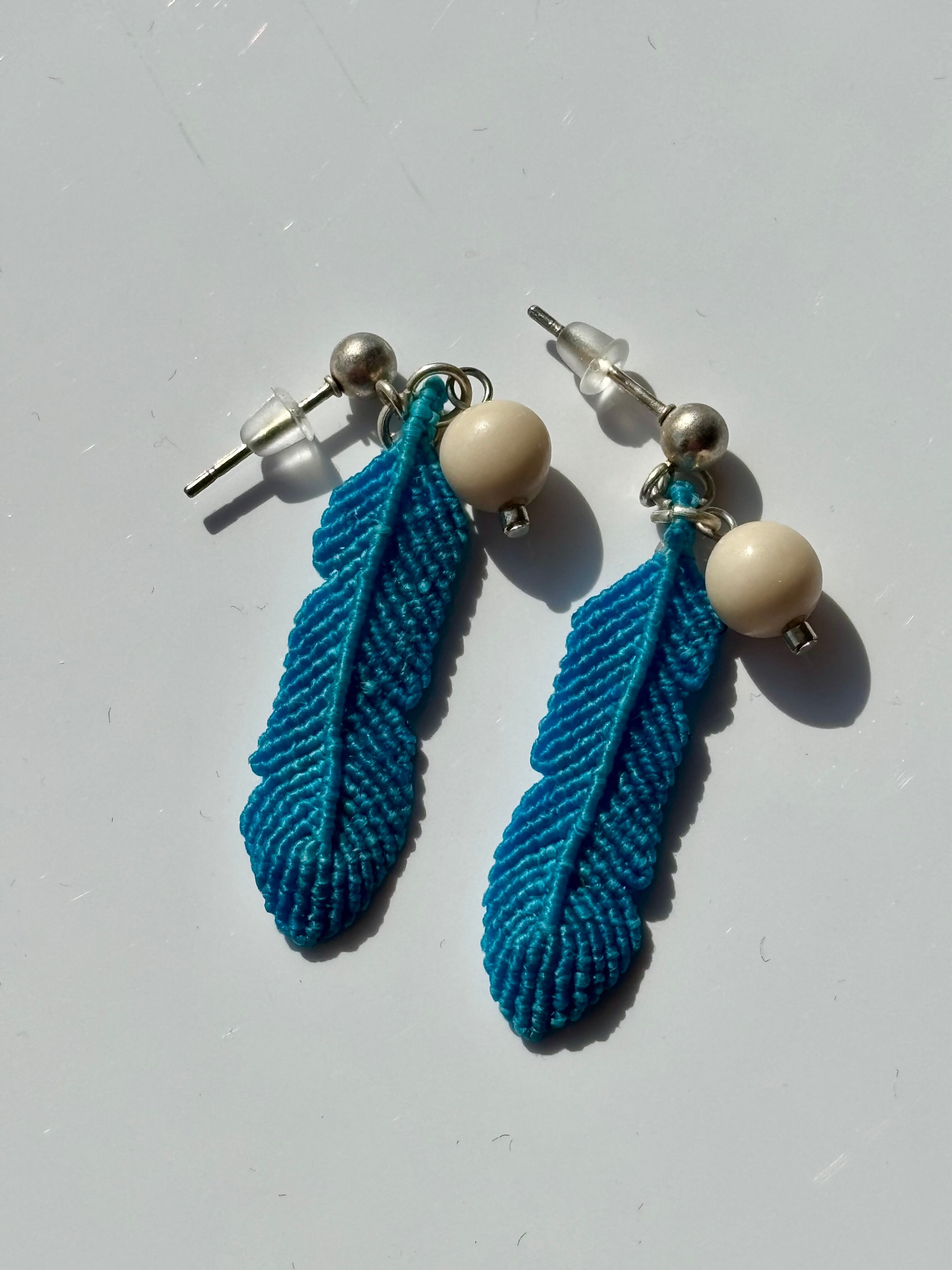 繊細な0.25ミリのワックスコードで編んだ羽根。