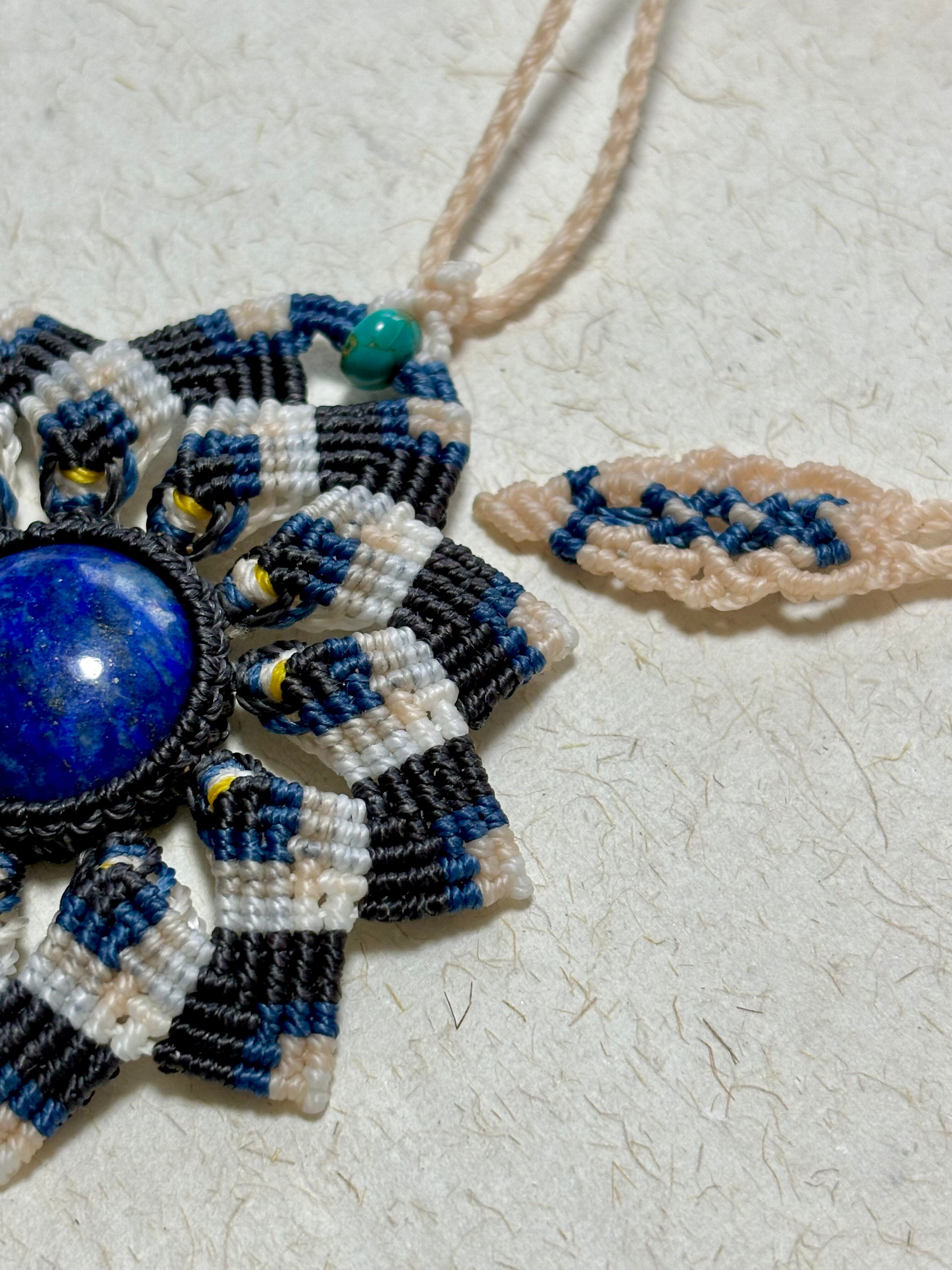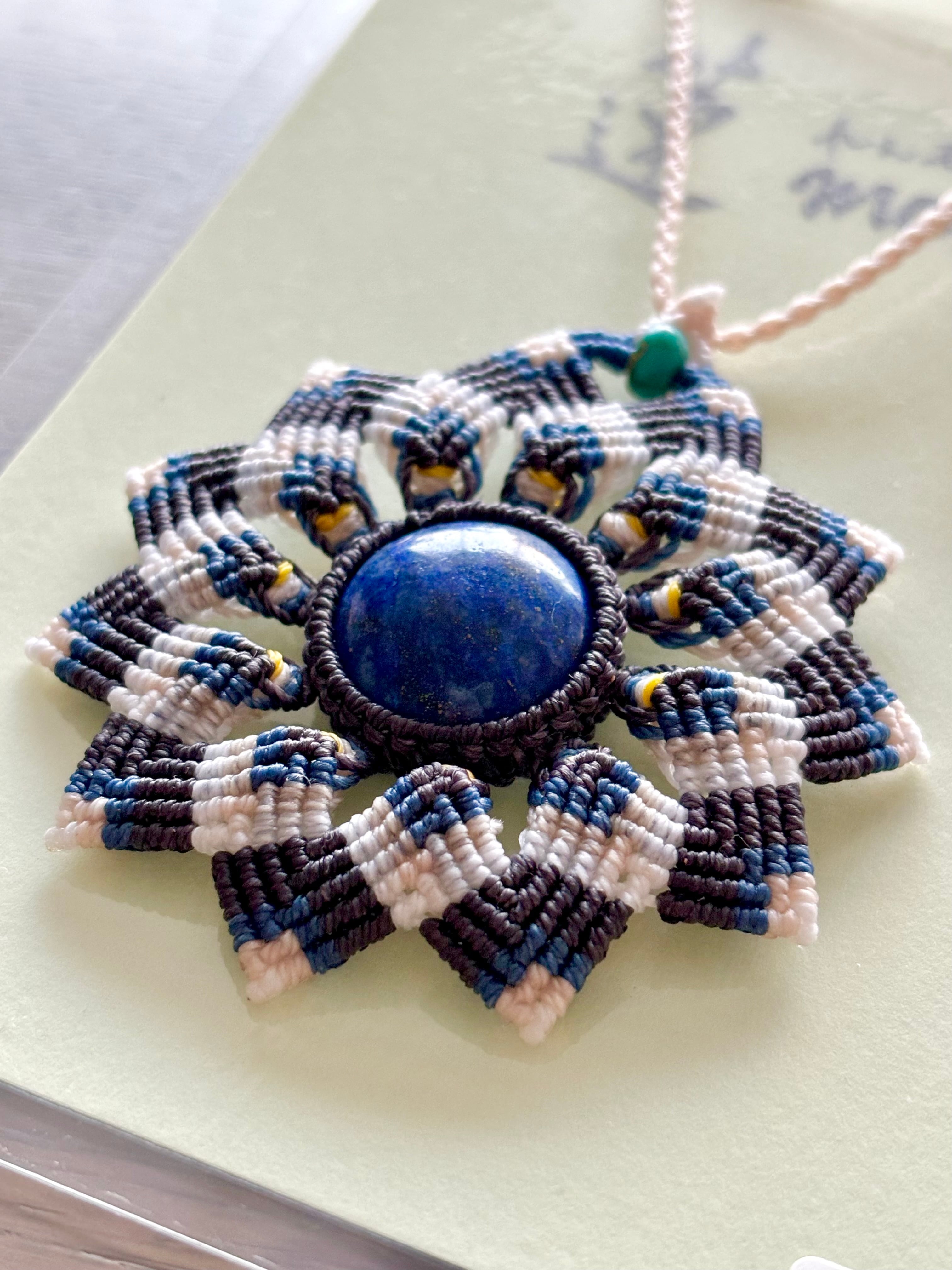 深みある藍とラピスラズリが調和する、華やかさの中に凛とした品格を宿します。繊細な編み模様は、まるで和の花が静かに咲くような佇まい。